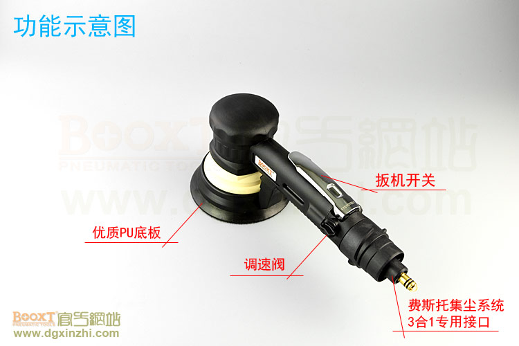--粗磨偏心度幅度為9.5mm,扭力大,切削能力更大,適合重力打磨。工件一般幅面較大,要求打磨速度快,粗糙的打磨表面,如:玻璃鋼,UV,原子灰等材質(zhì)比較硬的工件,所用砂紙規(guī)格120#以下;