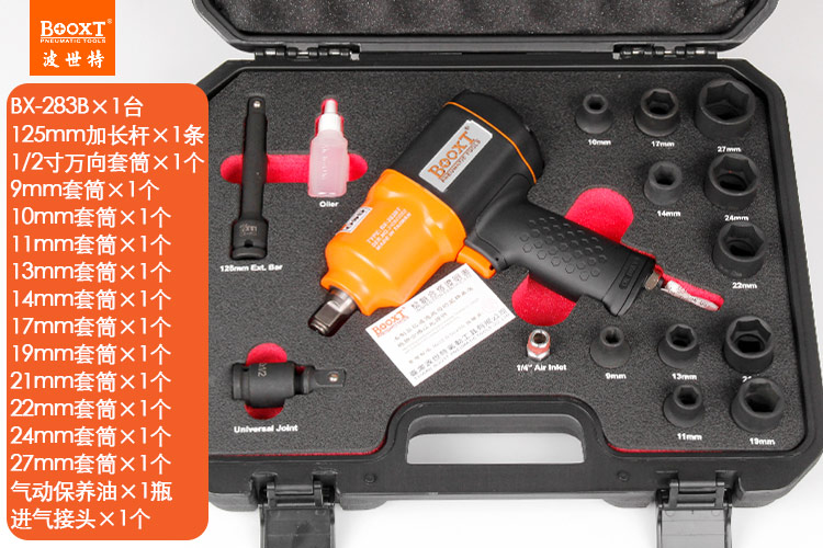 東莞市強勁五金工具有限公司提供臺灣BOOXT波世特品牌氣動工具,氣動扳手套裝BX-283T廠家直銷,首件享特價。咨詢熱線:4008301980