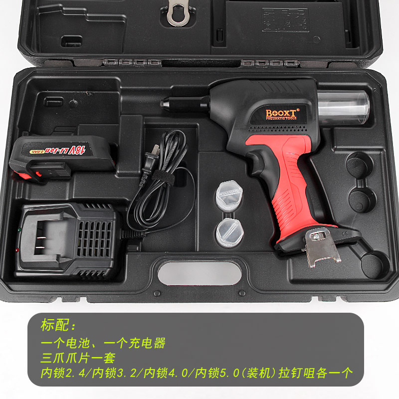 • 產(chǎn)品參數(shù): 拉釘規(guī)格:2.4-5.0mm 【所有材質(zhì)抽芯鉚釘】 鋰電電壓:18V 行 程:21mm 最大拉力:12000N 循環(huán)時(shí)間:2S 重 量:2.01kg。