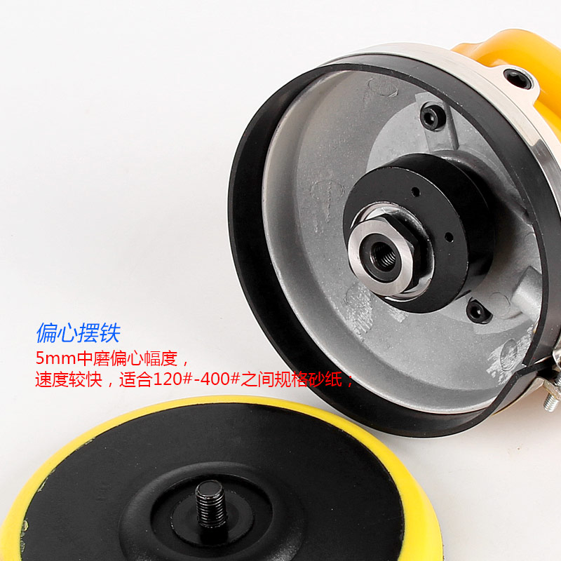 --粗磨偏心度幅度為9.5mm,扭力大,切削能力更大,適合重力打磨。工件一般幅面較大,要求打磨速度快,粗糙的打磨表面,如:玻璃鋼,UV,原子灰等材質(zhì)比較硬的工件,所用砂紙規(guī)格120#以下;