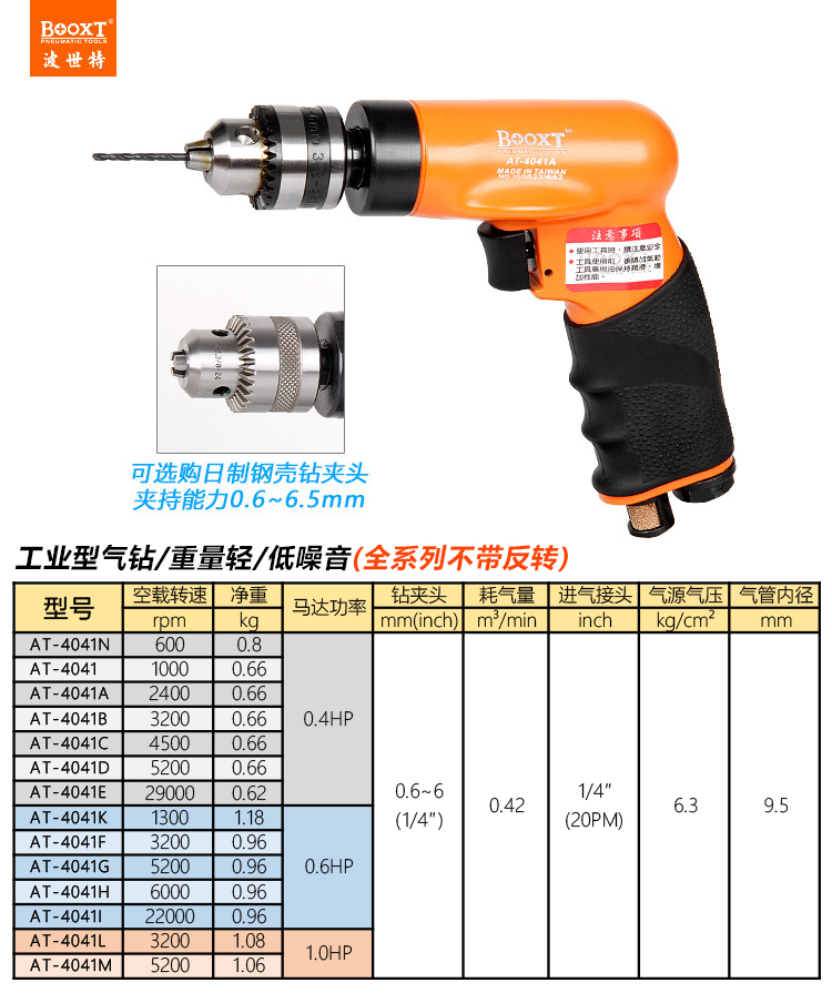 東莞市強(qiáng)勁五金工具有限公司提供臺(tái)灣BOOXT波世特品牌氣動(dòng)工具,4500轉(zhuǎn)航空級(jí)氣鉆AT-4041C廠家直銷,首件享特價(jià)。咨詢熱線:4008301980
