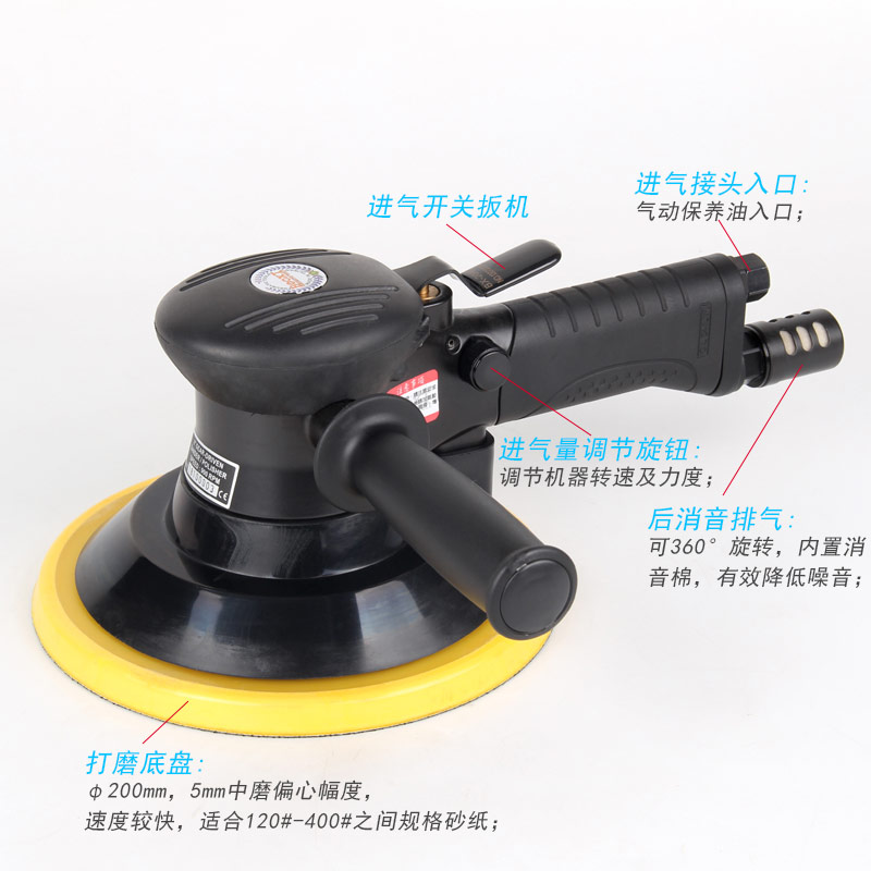 8寸圓形氣動砂紙機特點:
