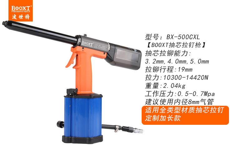 東莞市強(qiáng)勁五金工具有限公司提供臺灣BOOXT波世特品牌氣動工具,加長嘴氣動拉釘槍BX-500CXL廠家直銷,首件享特價。咨詢熱線:4008301980