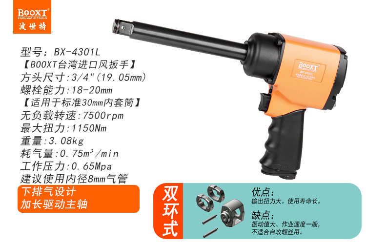 東莞市強(qiáng)勁五金工具有限公司提供臺(tái)灣BOOXT波世特品牌氣動(dòng)工具,槍型小風(fēng)炮BX-4301L廠家直銷,首件享特價(jià)。咨詢熱線:4008301980