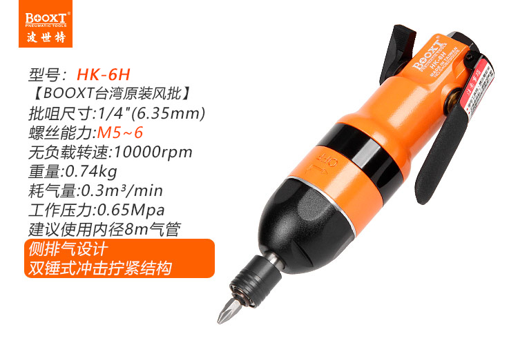 東莞市強勁五金工具有限公司提供臺灣BOOXT波世特品牌氣動工具,氣動螺絲刀HK-6H廠家直銷,首件享特價。咨詢熱線:4008301980