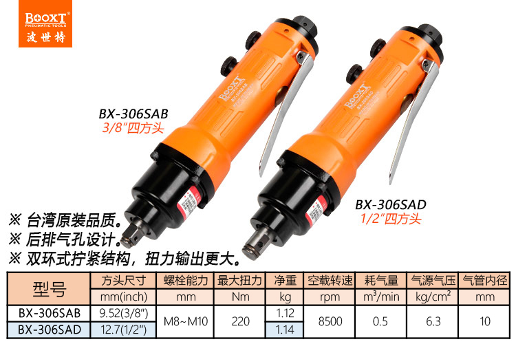 東莞市強(qiáng)勁五金工具有限公司提供臺灣BOOXT波世特品牌氣動工具,風(fēng)動扳手BX-306SAB廠家直銷,首件享特價。咨詢熱線:4008301980