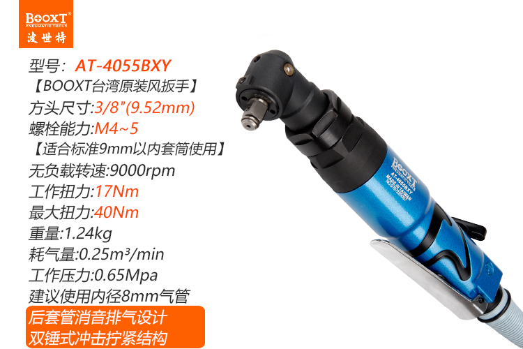 東莞市強勁五金工具有限公司提供臺灣BOOXT波世特品牌氣動工具,彎頭氣動扳手AT-4055BXY廠家直銷,首件享特價。咨詢熱線:4008301980