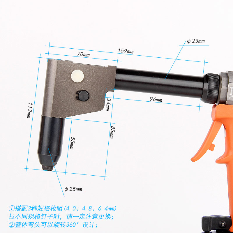 8.彎頭設(shè)計(jì),適用于狹窄、偏角、受阻等工位的鉚接作業(yè)。