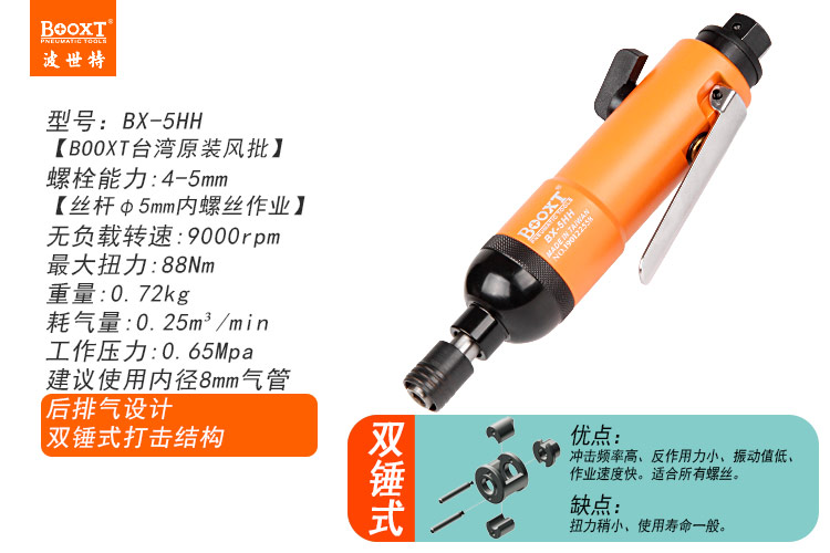東莞市強勁五金工具有限公司提供臺灣BOOXT波世特品牌氣動工具,后排氣風(fēng)批BX-5HH廠家直銷,首件享特價。咨詢熱線:4008301980