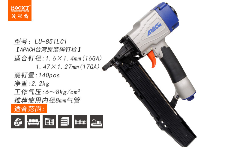 東莞市強(qiáng)勁五金工具有限公司提供臺(tái)灣BOOXT波世特品牌氣動(dòng)工具,輕型氣動(dòng)碼釘槍LU-851LC1廠(chǎng)家直銷(xiāo),首件享特價(jià)。咨詢(xún)熱線(xiàn):4008301980