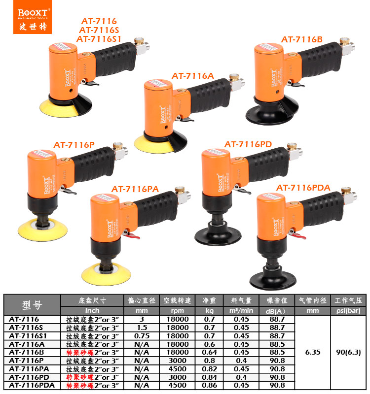 東莞強勁五金工具有限公司提供臺灣BOOXT波世特氣動工具,砂碟氣動打磨機AT-7116PDA廠家直銷,首件享特價。咨詢熱線:4008301980