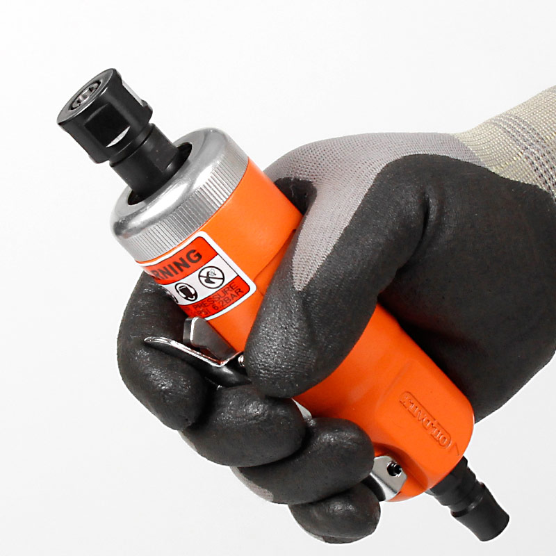 • 產(chǎn)品參數(shù): 夾頭能力:標(biāo)配M6 (可選配M3) 空載轉(zhuǎn)速:22000rpm 全 長:142mm 重 量 : 0.54kg 耗 氣 量:0.45m3/min 【專業(yè)型/前排氣】