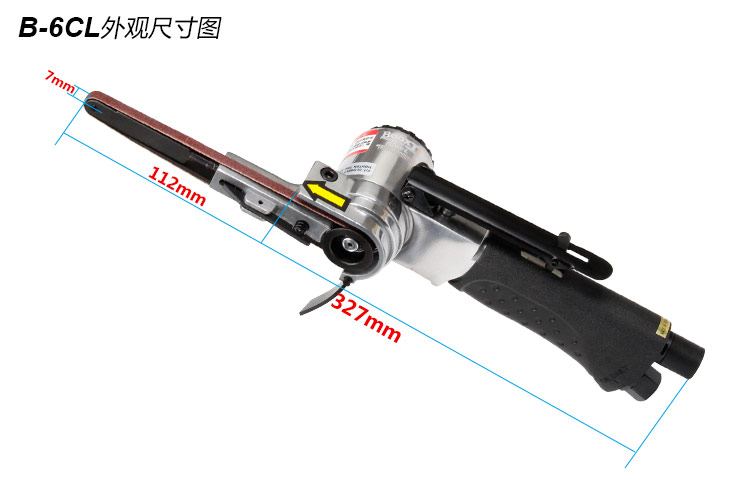 • 產(chǎn)品參數(shù): 砂帶尺寸:6×330mm; 空載轉(zhuǎn)速:20000rpm; 工具長度:327mm; 工具重量:0.86kg; 耗 氣 量:0.4m3/min; 噪 音 值:84db(A) 使用工作氣壓:0.65Mpa; 推薦使用內(nèi)徑8mm氣管; 平時使用應(yīng)多加氣動油保養(yǎng). 【工業(yè)型】