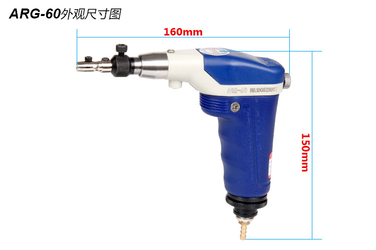 • 產品參數: 夾頭直徑:3mm 前后行程:0-6mm 【可調】 行程轉數:4500bpm 工具長度:160mm 耗 氣 量:0.25m3/min 重 量:0.62kg 【槍型/可調行程】