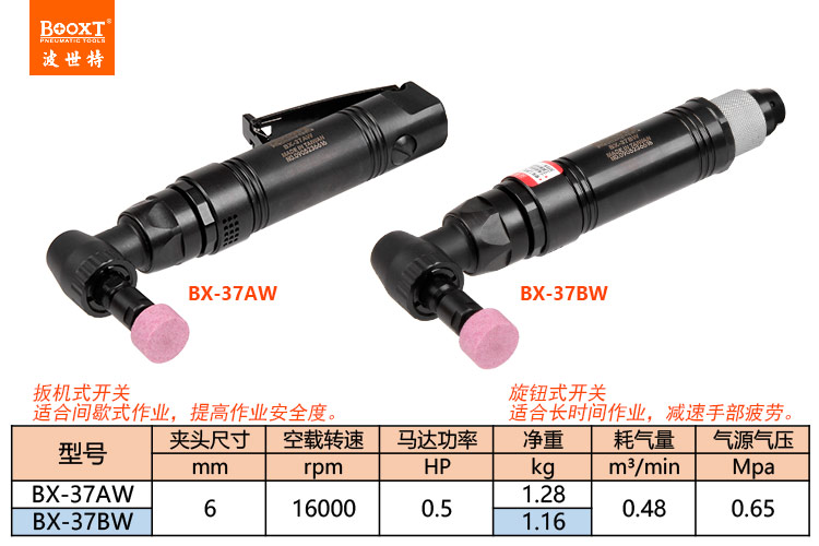 東莞市強(qiáng)勁五金工具有限公司提供臺(tái)灣BOOXT波世特品牌氣動(dòng)工具,彎頭風(fēng)磨機(jī)BX-37AW廠家直銷,首件享特價(jià)。咨詢熱線:4008301980