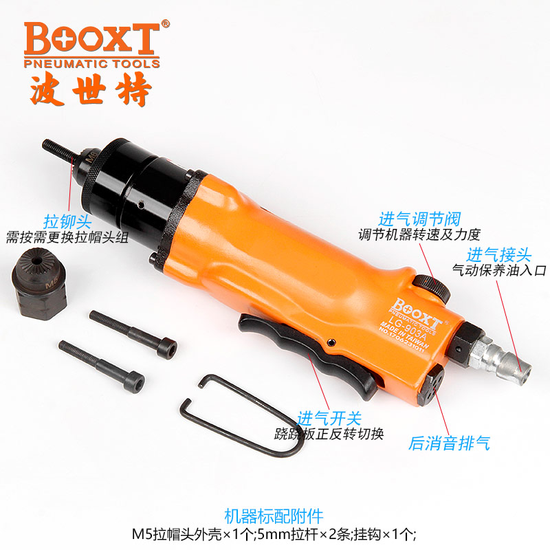 東莞市強(qiáng)勁五金工具有限公司提供臺灣BOOXT波世特品牌氣動工具,氣動鉚螺母槍LG-903A廠家直銷,首件享特價。咨詢熱線:4008301980