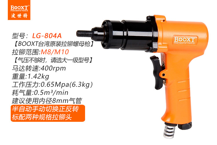 東莞市強勁五金工具有限公司提供臺灣BOOXT波世特品牌氣動工具,氣動拉螺帽槍LG-804A廠家直銷,首件享特價。咨詢熱線:4008301980