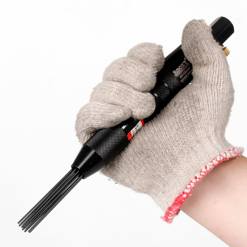 • 產(chǎn)品參數(shù): 沖擊頻率:5300bpm 除銹針數(shù)量:12pcs 除銹針尺寸:M1.4*80L 耗 氣 量:0.1m3/min 全 長(zhǎng):245mm 凈 重:0.46kg 【迷你型】