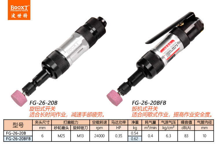 東莞市強(qiáng)勁五金工具有限公司提供臺灣BOOXT波世特品牌氣動(dòng)工具,高精密風(fēng)磨機(jī)FG-26-20BFB廠家直銷,首件享特價(jià)。咨詢熱線:4008301980