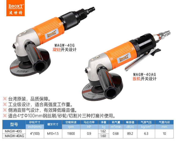 東莞市強(qiáng)勁五金工具有限公司提供臺(tái)灣BOOXT波世特品牌氣動(dòng)工具,4寸風(fēng)動(dòng)角磨機(jī)MAGW-40AG廠家直銷,首件享特價(jià)。咨詢熱線:4008301980