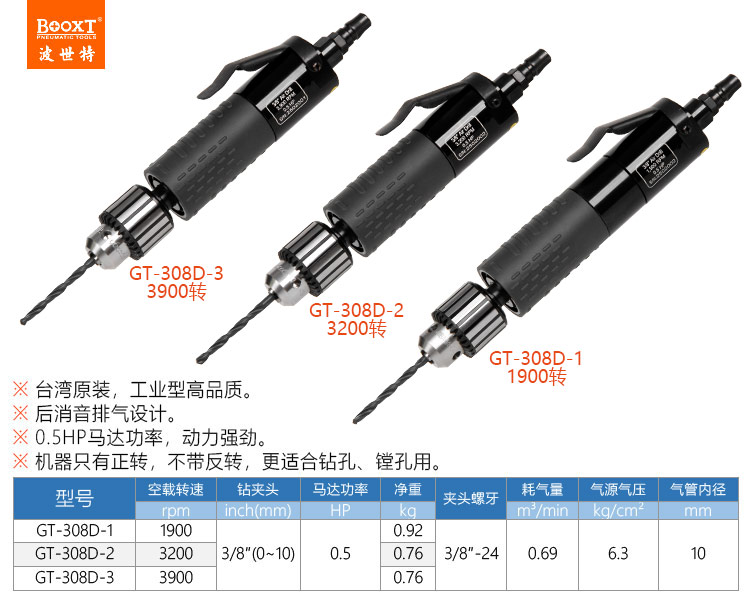 東莞市強勁五金工具有限公司提供臺灣BOOXT波世特品牌氣動工具,直式風鉆GT-308D-3廠家直銷,首件享特價。咨詢熱線:4008301980