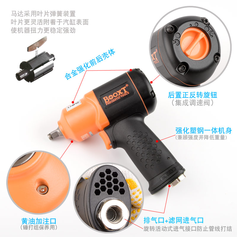 風動板手特點:(塑鋼外殼,強度更高不變形,提高耐用度)
