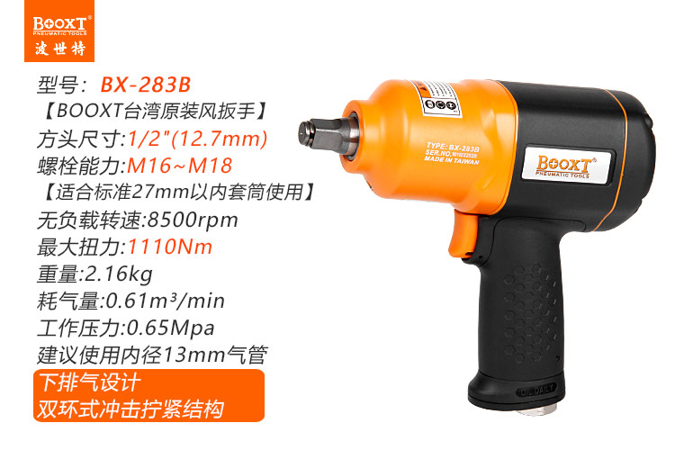東莞市強勁五金工具有限公司提供臺灣BOOXT波世特品牌氣動工具,風(fēng)扳手BX-283B廠家直銷,首件享特價。咨詢熱線:4008301980